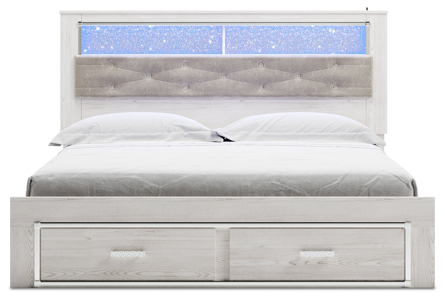 King Upholstered Storage Bed / White