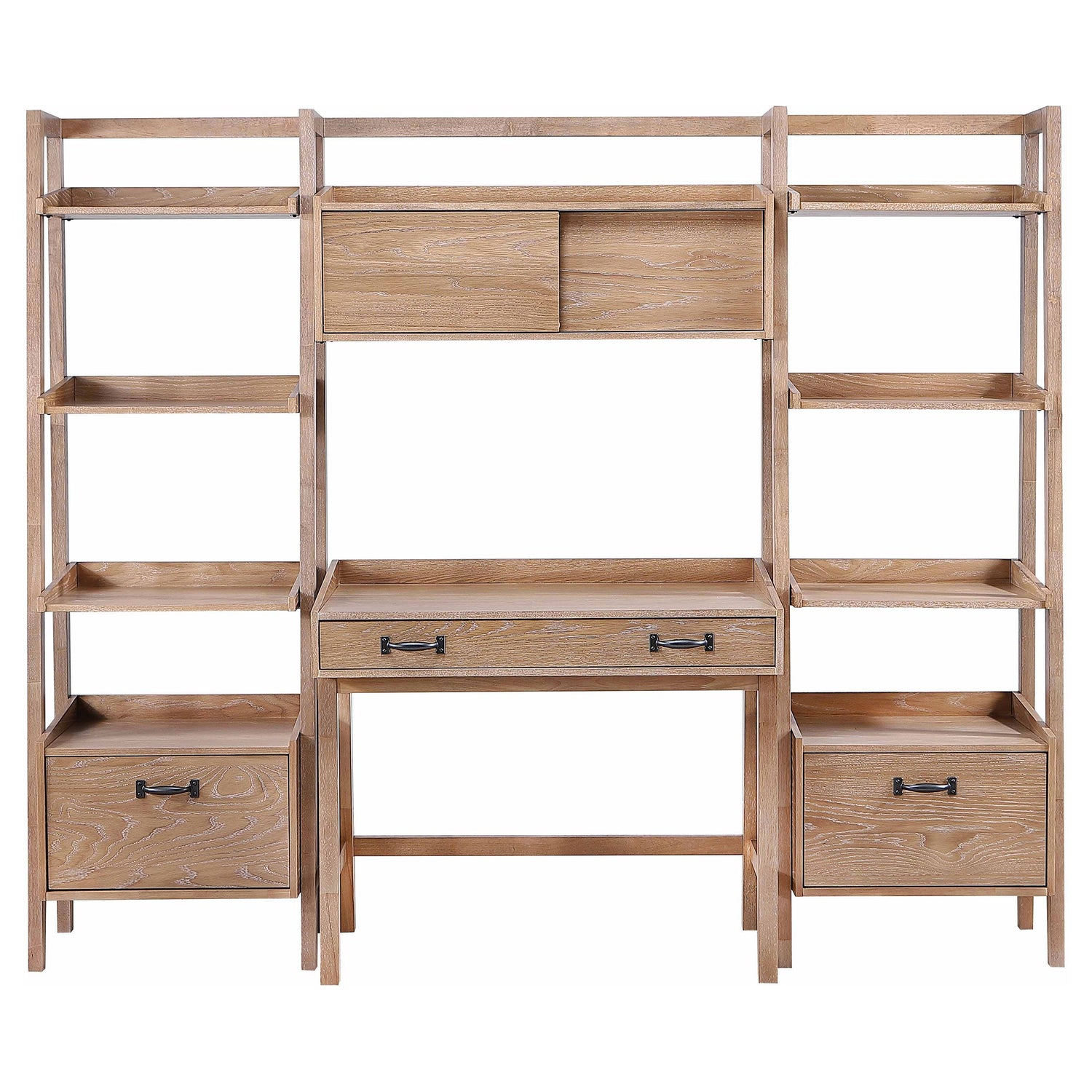 Fabian 4-piece Computer Desk and Bookshelf Set Distressed Light Brown