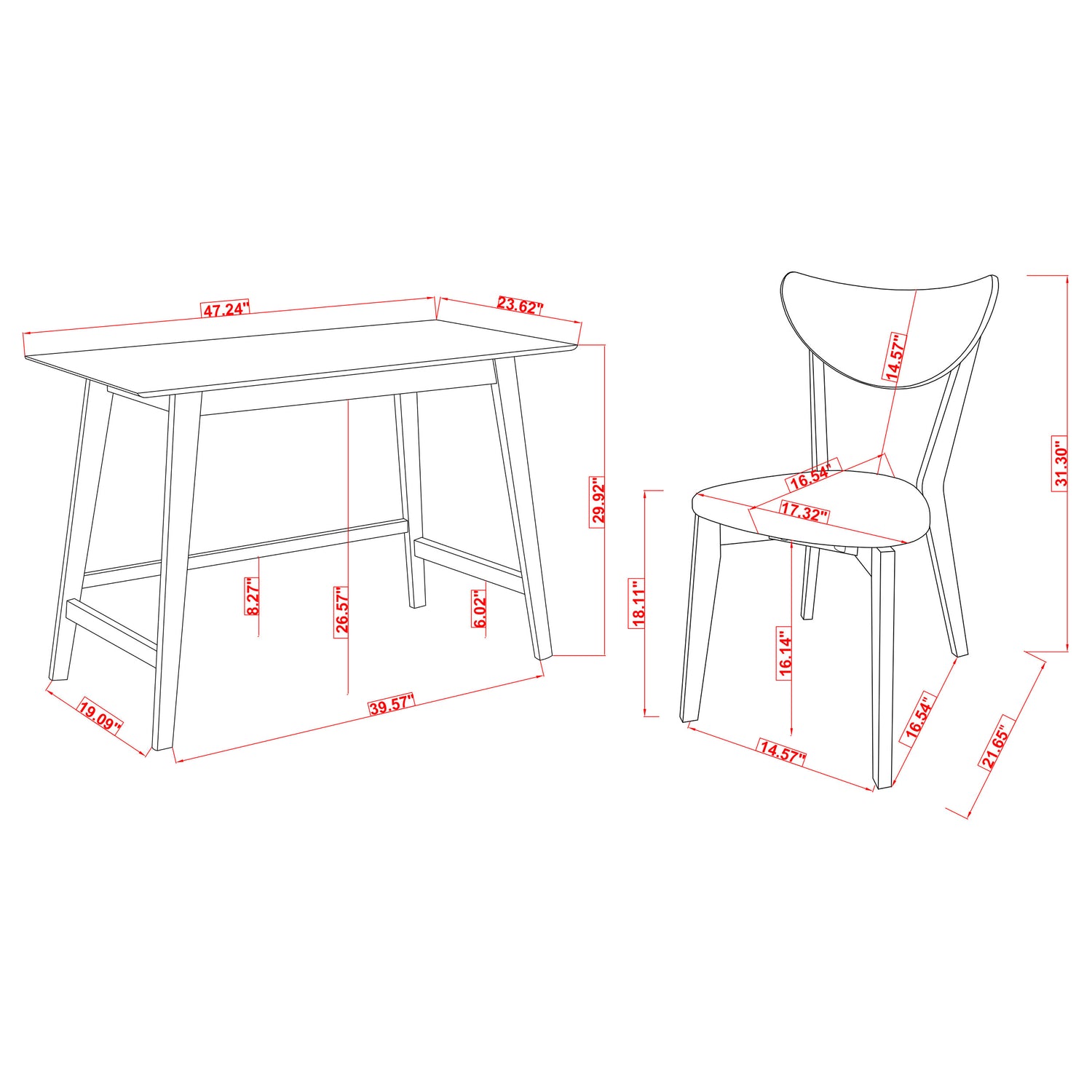 | Writing Desk | 47.25" | 23.5" | 30" |