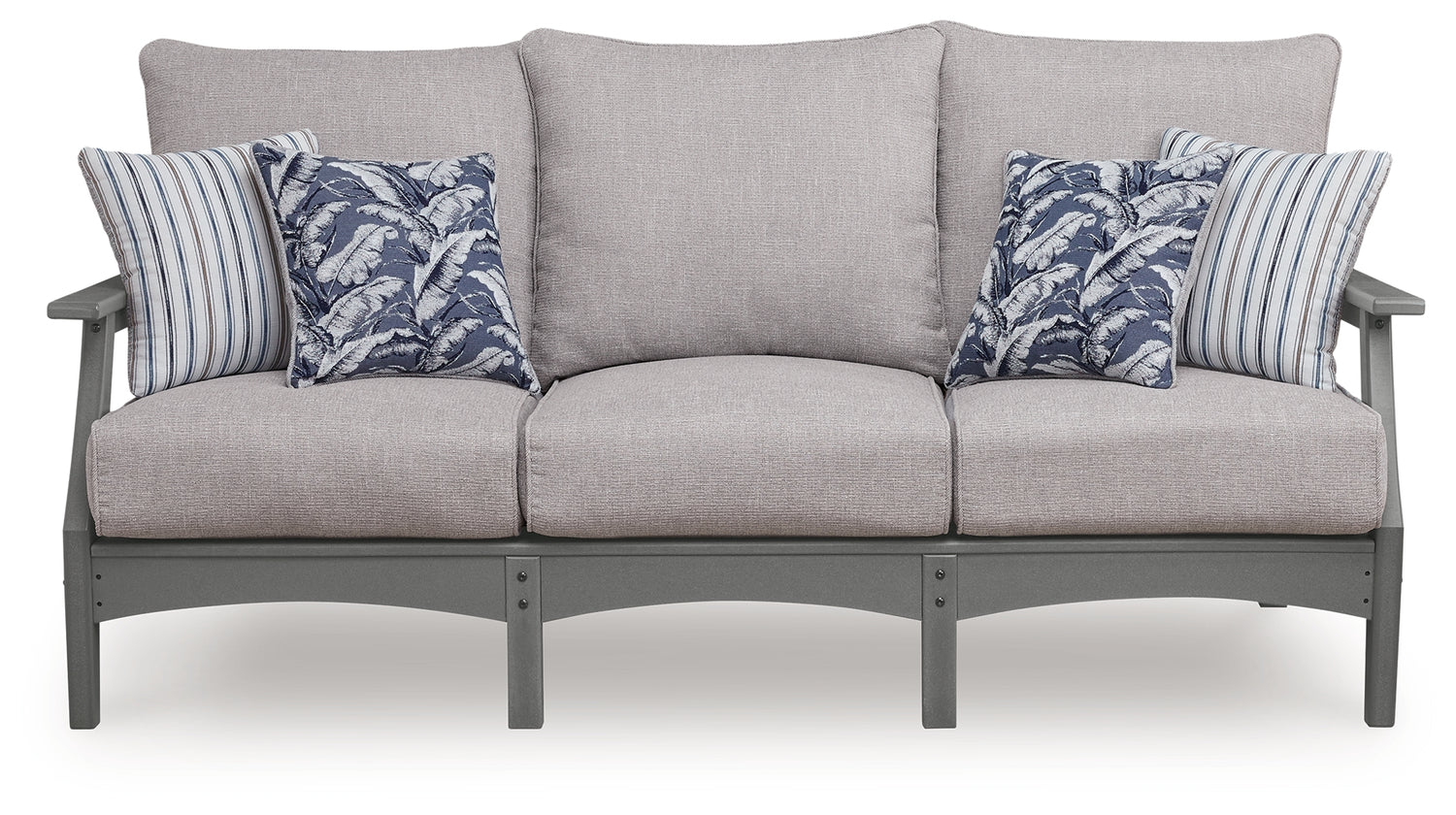 This outdoor loveseat prioritizes versatile style and comfort, all while providing the durability you need alfresco. Crafted with a sturdy wood-look material in gray, it withstands the elements with ease. Cleanable and UV-resistant Nuvella® fabric rounds out the piece with added function.